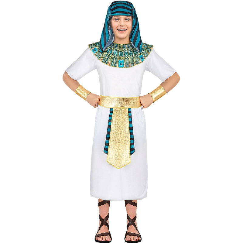 Das exklusive Ägypter Tutanchamun Kinderkostüm enthält: Tunika, Gürtel, Armbänder und Kopfschmuck | Dieses Kinderkostüm, das Ägyptischer Pharao Tutanchamun imitiert, ist in 4 verschiedenen Größen erhältlich.