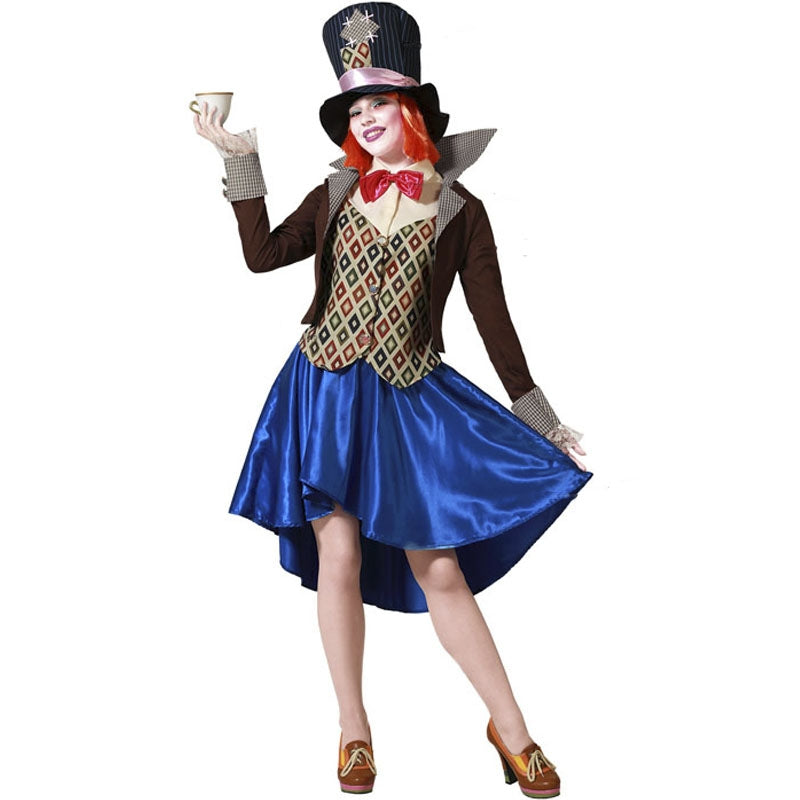 Das Original Alices märchenhafte Hutschachtel-Kostüm für Frauen enthält: Zylinder, Fliege, Weste, Jacke und Rock | Dieses Verrückte Hutschachtel mit Deluxe-Ausstattung Damenkostüm ist in 4 verschiedenen Größen erhältlich
