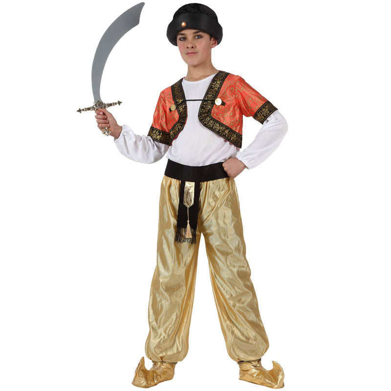 Das Original Arabischer Prinz-Kostüm für Kinder enthält: Hemd, Weste, Hose, Überschuhe, Hut und Gürtel | Dieses Arabischer Prinz Kinderkostüm ist in 4 verschiedenen Größen erhältlich.