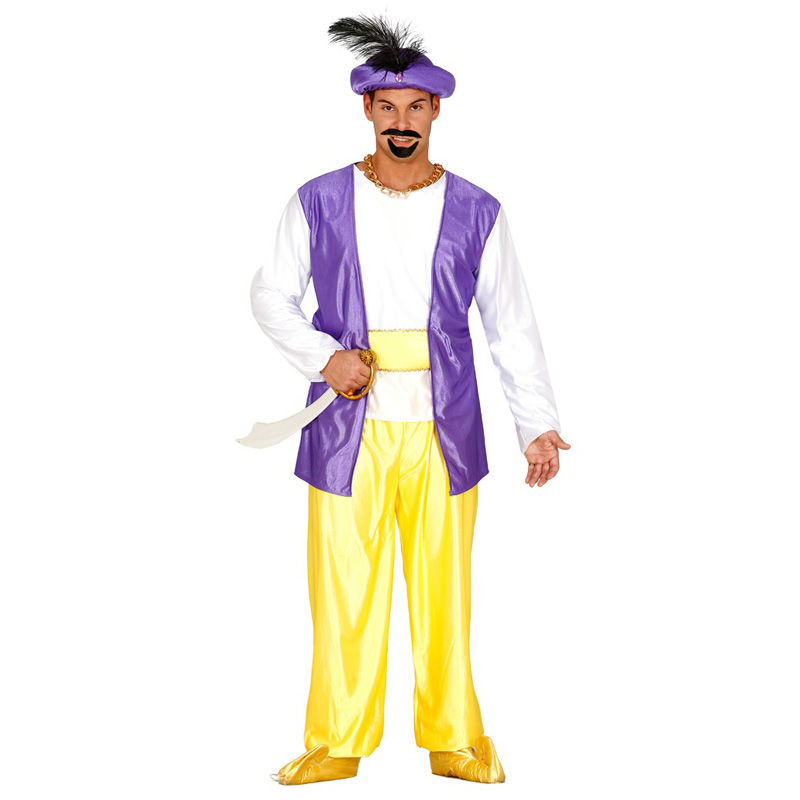 Das Original Arabischer Sultan-Kostüm für Erwachsene enthält: Hut, T-Shirt mit Weste, Gürtel und Hose | Dieses Arabischer Sultan Herrenkostüm ist in einer Größe erhältlich.