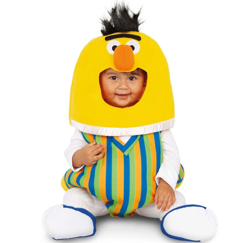Dieses originelle Sesamstraßen-Bert-Kostüm mit Balloneffekt für Babys enthält: Kostüm, Mütze und Füßchen | Das niedliche Bert-Babykostüm ist in 3 verschiedenen Größen erhältlich