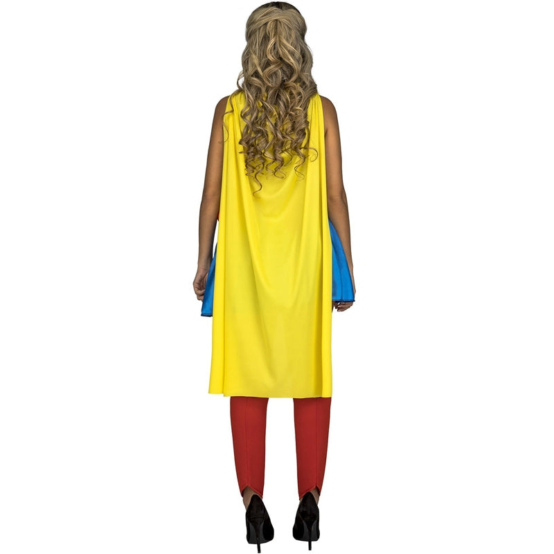 Das Original Bier Superheldin-Kostüm für Frauen enthält: Kleid, Umhang, Gürtel und Gamaschen | Dieses Bier Superheldin Damenkostüm ist in 1 verschiedenen Größen erhältlich.