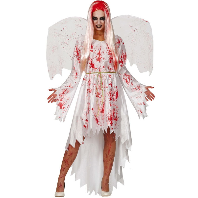 Das Original Blutige Engel Halloween-Kostüm für Frauen enthält: Kleid, Flügel und Gürtel | Dieses Blutige Engel Damenkostüm ist in 2 verschiedenen Größen erhältlich und wird jeden auf Ihrer nächsten Horror-Party umhauen.