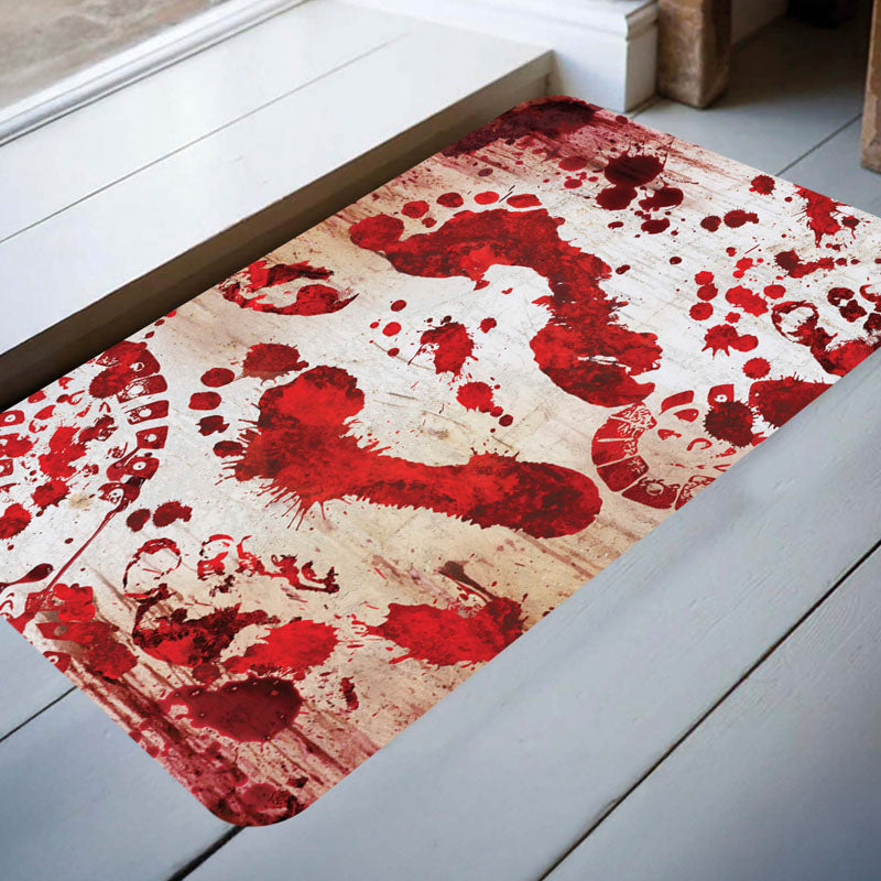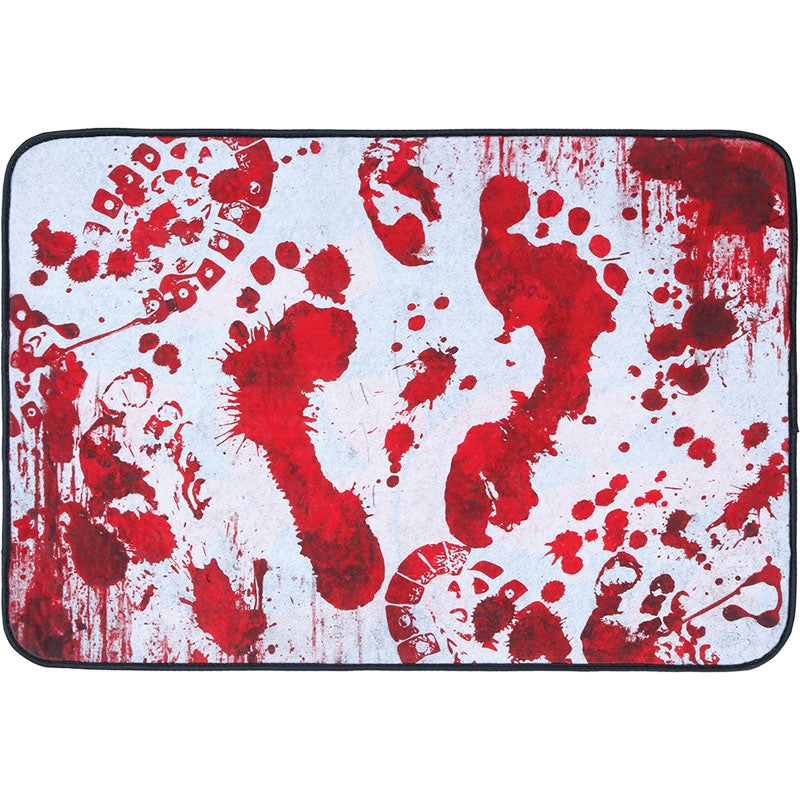 Die Fußmatte mit blutigen Fußspuren (60x40 cm) erzeugt einen realistischen Gore-Effekt am Eingang deines Hauses. Ein günstiges und perfektes Accessoire für deine Halloween-Dekoration.