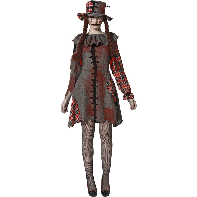 Blutige Stoffpuppe Halloween Kostüm für Erwachsene beinhaltet: Kleid und Mütze | Dieses genähte Voodoo-Puppe Kostüm für Frauen ist in 3 verschiedenen Größen erhältlich