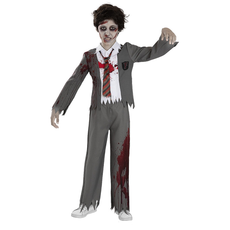 Wenn die Dunkelheit hereinbricht und die Halloween-Nacht alle Kreaturen erweckt, gibt es einen Schüler, der beschließt, die Grenze zwischen der Welt der Lebenden und der der Untoten zu überschreiten: der Blutige Zombie-Schüler. Dieses Kostüm verwandelt jedes Kind in den furchterregenden Protagonisten einer verfluchten Schulgeschichte, bereit, auf jeder Grusel-Kostümparty Schrecken zu verbreiten. Stell dir die Aufregung deines Kleinen vor, der durch die Gänge läuft, eine Mischung aus Lachen und Schock, während sein Outfit voller realistischer Details ihn zum Mittelpunkt aller Blicke macht. Entdecke ein unvergessliches Erlebnis in unseren Halloween-Kostümen für Jungen, wo jedes Teil eine Geschichte erzählt.