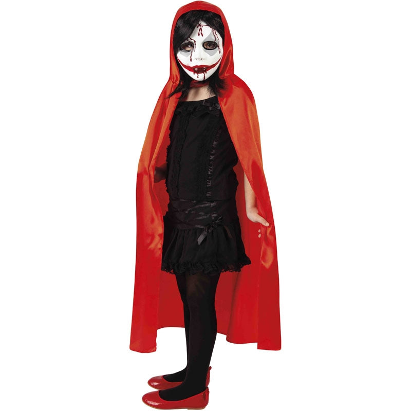 Dieses gruselige Blutrünstig mit Kapuze Mädchen-Halloweenkostüm beinhaltet: Umhang mit Kapuze und Maske | Dieses Blutrünstig mit Kapuze Kinderkostüm ist in 2 verschiedenen Größen erhältlich und es ist perfekt, um in der dunkelsten Nacht des Jahres zu glänzen.