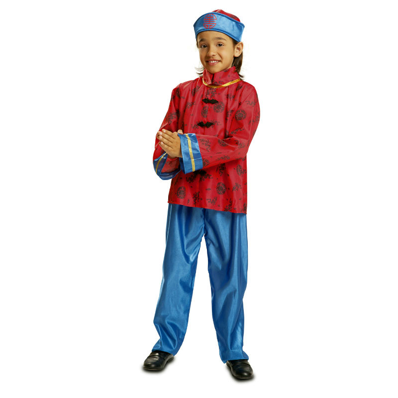 Chinesisches Kinderkostum bestehend aus: Hemd, Hose und Hut.