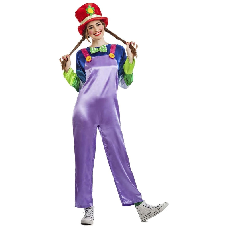 Das Original Clownin Piluki-Kostüm für Frauen enthält: Overall mit Fliege und Hut | Dieses Lustige Clownin Damenkostüm ist in 2 verschiedenen Größen erhältlich