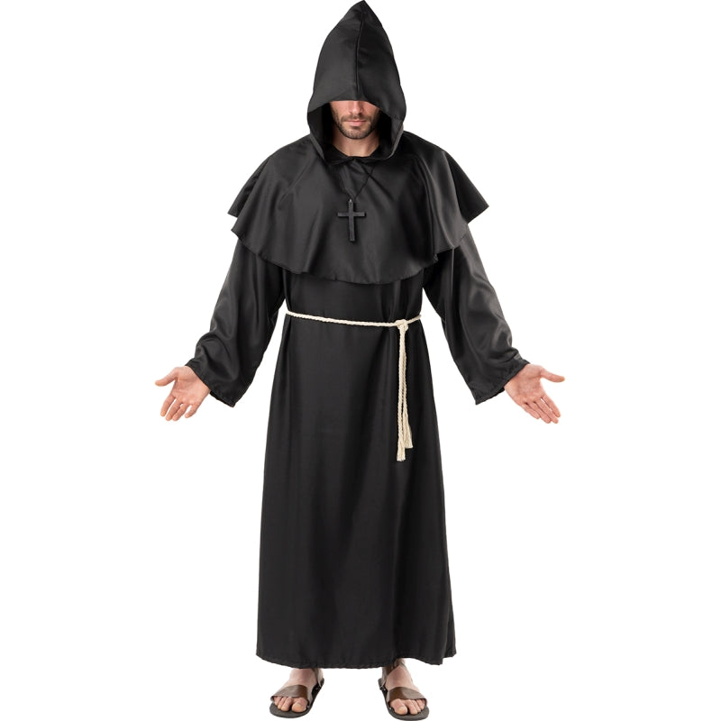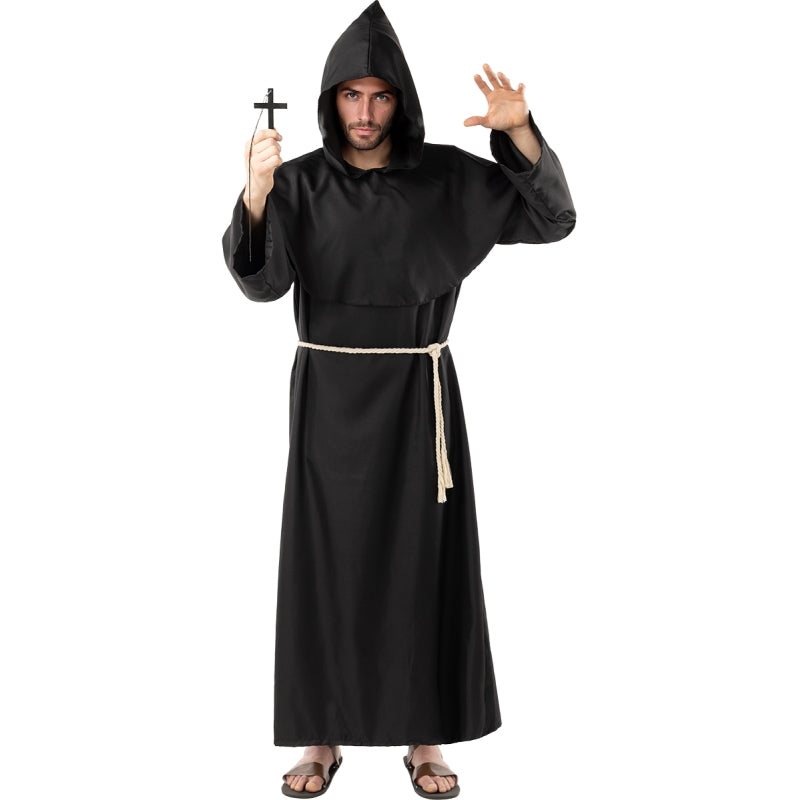 Deluxe-Mönchskostüm für Erwachsene mit Kapuzenrobe, Gürtel und Kette mit Kreuz. In 5 Größen erhältlich. Ideal für Mittelalter- oder Theaterfeste.