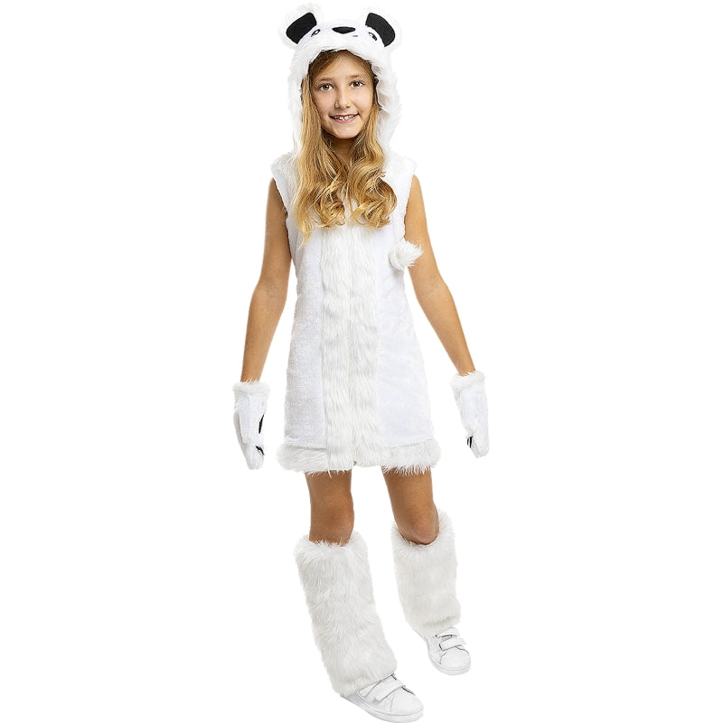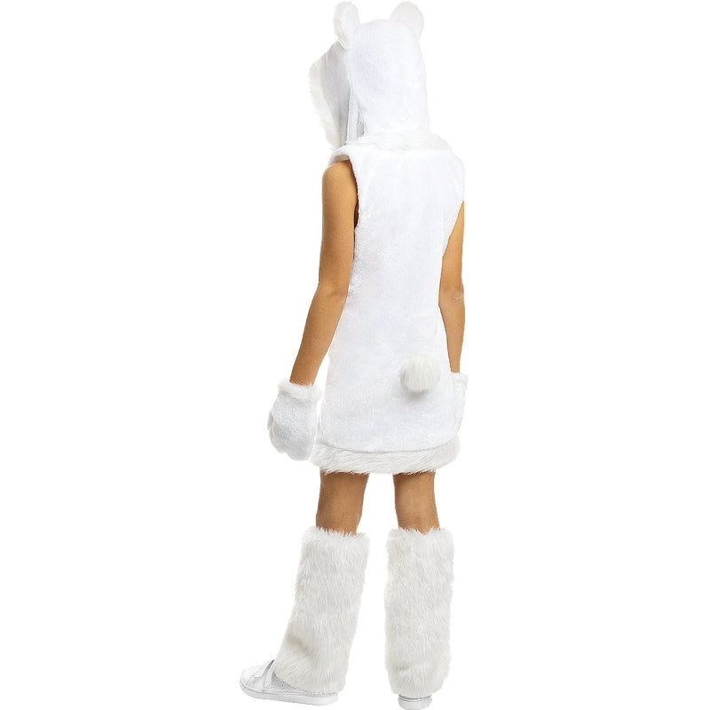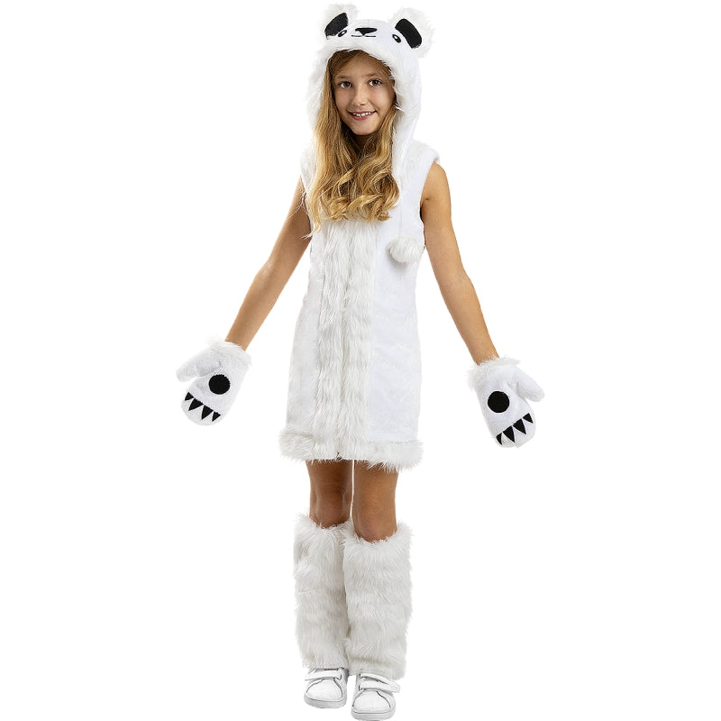 Das Original Eisbär-Kostüm für Mädchen beinhaltet: Kleid mit Kapuze, Handschuhen und Stiefelstulpen | Dieses Weißer Eisbär aus der Arktis Kinderkostüm ist in 4 verschiedenen Größen erhältlich
