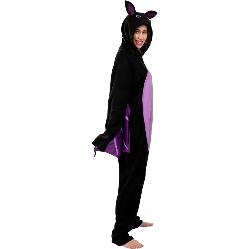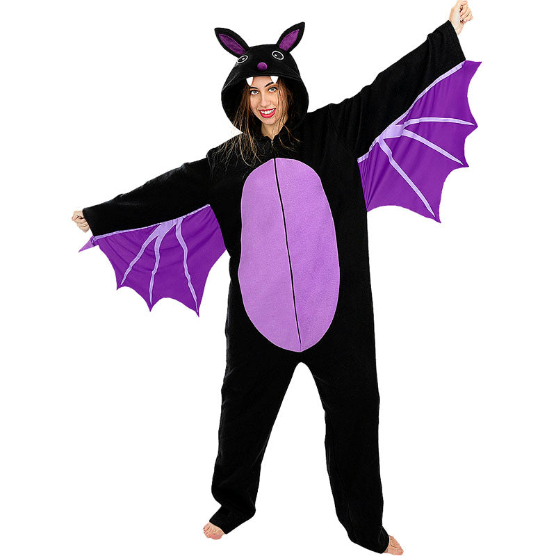 Das neue Kostüm von Fledermaus mit Flügeln für Erwachsene enthält: Kapuzenpulli mit Flügeln | Dieses exklusive Kostüm, das sowohl für Männer als auch für Frauen geeignet ist und Schwarz-lila Fledermaus nachahmt, ist in 3 verschiedenen Größen erhältlich.