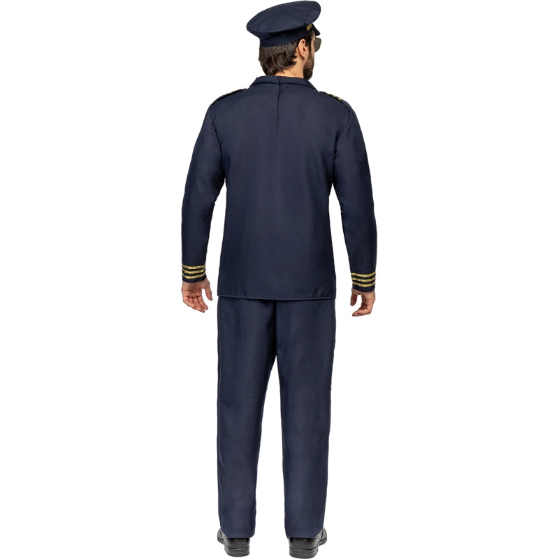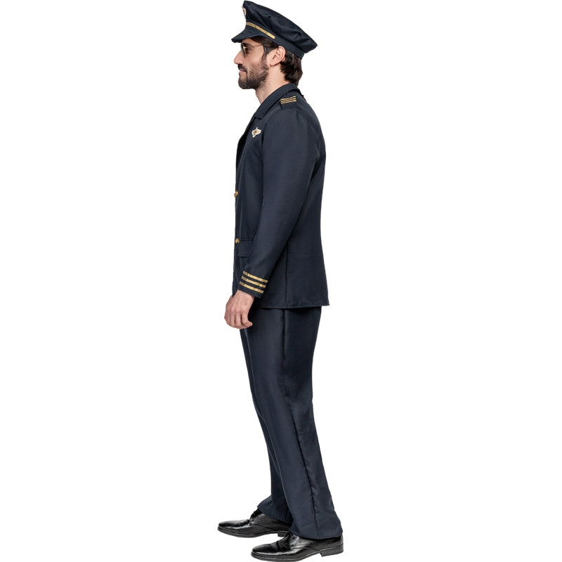 Dieses exklusive Kostüm für Flugpilot Männer enthält: Jacke mit Brustplatte, Krawatte, Hose und Mütze | Dieses Männerkostüm, das Flugkommandant auf internationaler Route nachahmt, ist in 5 verschiedenen Größen erhältlich und bitte beachten Sie, dass dies NICHT enthalten ist: Brille und Koffer
