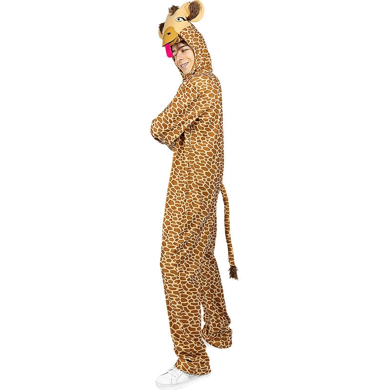 Das neue Kostüm von Giraffe im Zoo für Erwachsene enthält: Overall mit Kapuze | Dieses exklusive Kostüm, das sowohl für Männer als auch für Frauen geeignet ist und Giraffe nachahmt, ist in 3 verschiedenen Größen erhältlich.