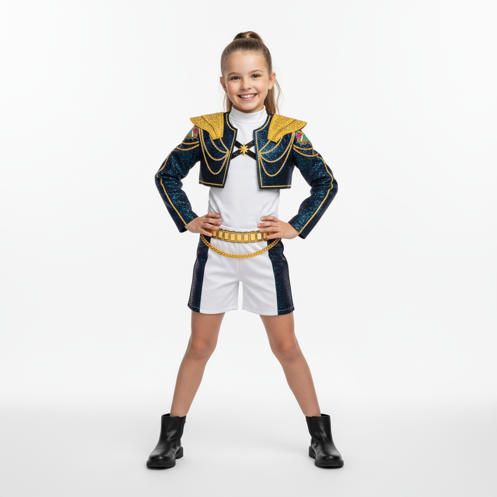 Stellen Sie sich die Aufregung Ihrer Tochter vor, wenn sie zu Golden Rumi wird, der mutigen Kpop-Kriegerin der Demon Hunters, inspiriert vom Netflix-Erfolg „Huntrix“. Dieses offizielle Kostüm der K-Pop-Kriegerinnen versetzt sie direkt auf die Bühne als die Superstar-Hauptsängerin des beliebtesten K-Pop-Trios. Ihre Energie erobert den Karneval und setzt bei jeder Kostümparty Trends, wo sie dank ihres authentischen und kraftvollen Outfits nicht unbemerkt bleiben wird. Entdecken Sie, warum das Golden Rumi K-Pop Kostüm bereits ein Favorit bei Veranstaltungen und Paraden ist, perfekt für Mädchen, die von Rhythmus, Glanz und Abenteuer träumen.