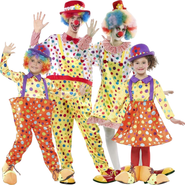 Fantastische Idee, deine ganze Familie als Punktclowns zu verkleiden, mit passenden Designs für Männer, Frauen, Jungen und Mädchen.