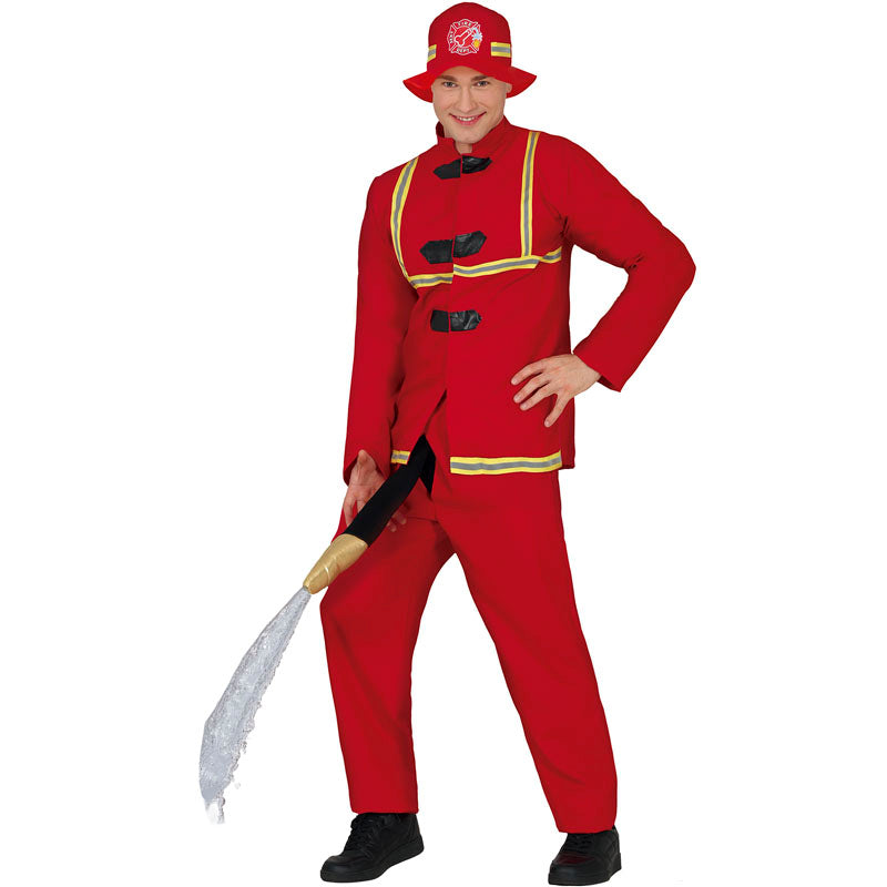 Das Original Gut ausgestatteter Feuerwehrmann-Kostüm für Erwachsene enthält: Mütze, Jacke und Hose | Dieses Komischer Feuerwehrheld Herrenkostüm ist in 2 verschiedenen Größen erhältlich