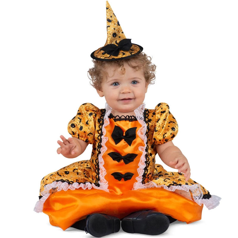 Baby Hexe Versailles orange Halloween Kostüm beinhaltet: Kleid und Stirnband mit Hut | Dieses Baby orange Hexe des Schlosses von Versailles Kostüm ist in 3 verschiedenen Größen erhältlich