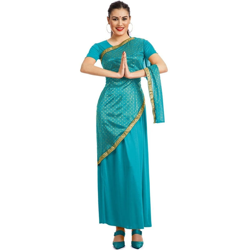 Machen Sie sich bereit, die Blicke auf sich zu ziehen mit unserem umwerfenden neuen Hindu Bollywood türkis-Kostüm für Frauen - da sind Sie bei uns genau richtig! Wir haben dieses Bollywood-Star in türkisfarbener Kleidung-Kostüm für Damen im Angebot, das Sie mit Sicherheit zu einem der umjubeltesten Gäste machen wird. Mit diesem originellen Indische Tänzerin in Türkis-Kostüm für Frauen fühlen Sie sich wie die echte Königin der Party. Jedes Detail dieses Kostüms wurde sorgfältig entworfen und aus hochwertigen Materialien gefertigt, um einen makellosen Hindu Bollywood türkis-Look zu garantieren, egal wann Sie es tragen: auf einer Themenparty mit Freunden, einem Cosplay-Event, einem Karnevalsumzug oder einer Junggesellinnenparty. Das Kostüm beinhaltet: Oberteil, Rock und Sari und ist in 2 verschiedenen Größen erhältlich, um die maximale Anzahl von Kunden zu passen und wird Sie unter all Ihren Freunden und Gästen hervorstechen lassen, indem Sie einen eleganten und verführerischen Look erreichen. In unserem Online-Shop finden Sie Hunderte von Kostümideen für Damen, wir sind stolz darauf, qualitativ hochwertige Produkte zu erschwinglichen Preisen anzubieten. Wenn Sie auf der Suche nach einem erschwinglichen Bollywood-Star in türkisfarbener Kleidung-Kostüm für Frauen sind, um sich stilvoll und selbstbewusst zu verkleiden, dann suchen Sie nicht weiter! Wählen Sie Ihre Größe und klicken Sie auf die Schaltfläche In den Warenkorb, um Ihre Bestellung zu starten und wir werden diesen Indische Tänzerin in Türkis Look so schnell wie möglich zu Ihnen nach Hause liefern - Sie werden es nicht bereuen!