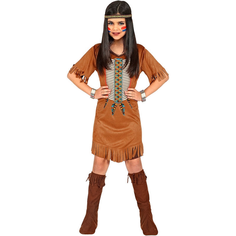 Das Original Indianischer Ureinwohner-Kostüm für Mädchen beinhaltet: Kleid und Stirnband | Dieses Indianischer Ureinwohner Kinderkostüm ist in 5 verschiedenen Größen erhältlich