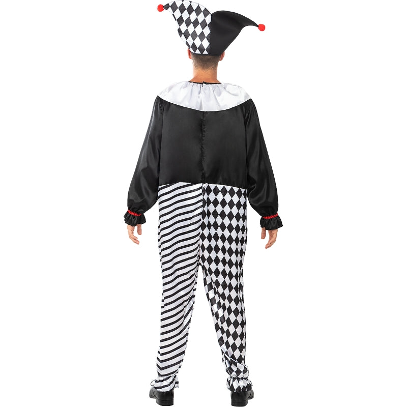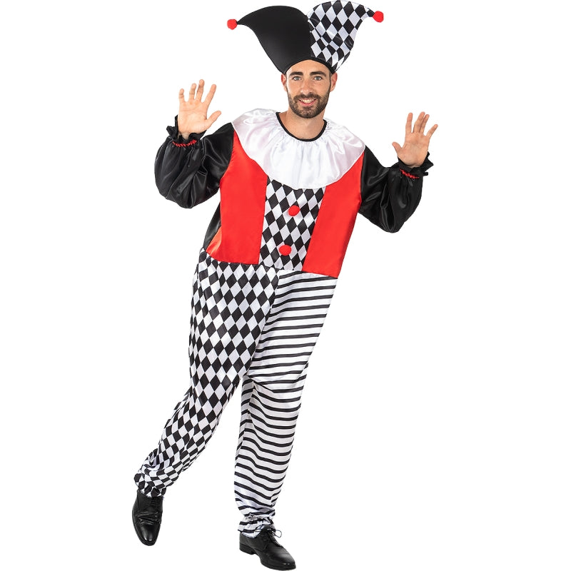 Dieses exklusive Kostüm für Klassischer Harlekin Männer enthält: Overall und Hut | Dieses Männerkostüm, das Figur der italienischen Commedia dell’arte nachahmt, ist in 4 verschiedenen Größen erhältlich