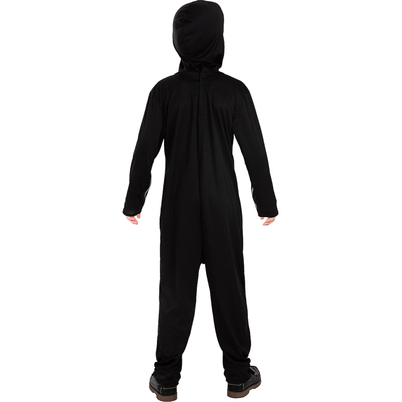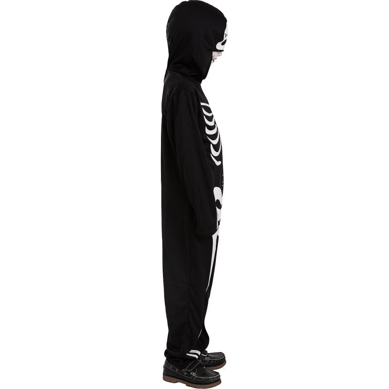 Das exklusive Klassisches Schwarzes Skelett Kinderkostüm enthält: Overall mit Kapuze | Dieses Kinderkostüm, das Traditionelles schwarzes Skelett imitiert, ist in 4 verschiedenen Größen erhältlich.