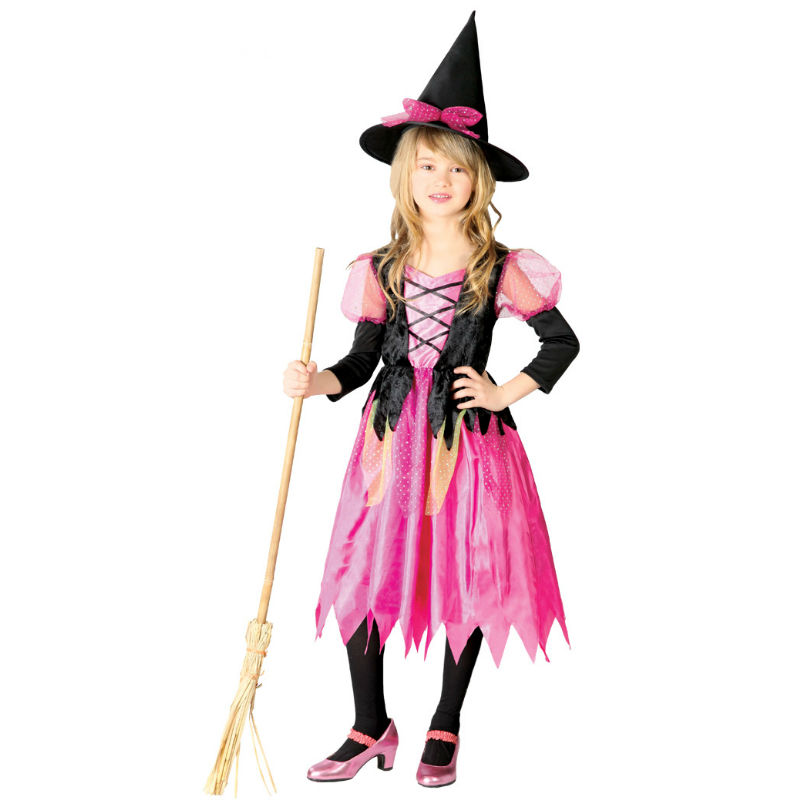 Dieses gruselige Kleine rosa Hexe Mädchen-Halloweenkostüm beinhaltet: Kleid und Hut | Dieses Kleine rosa Hexe Kinderkostüm ist in 3 verschiedenen Größen erhältlich und es ist perfekt, um in der dunkelsten Nacht des Jahres zu glänzen.