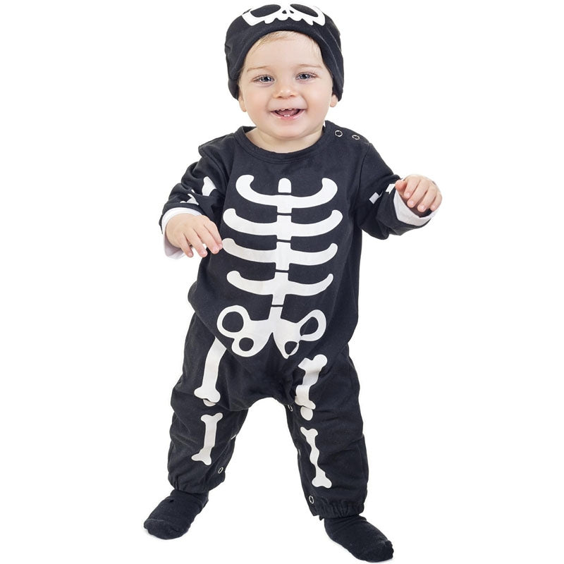 Dieses gruselige Knochen SkelettKleinekinder-Halloweenkostüm beinhaltet: enthält: Hut und Overall | Dieses Knochen SkelettBaby kostüm ist in 2 verschiedenen Größen erhältlich und ist die beste Wahl, um Ihre erste Halloween-Party zu feiern.
