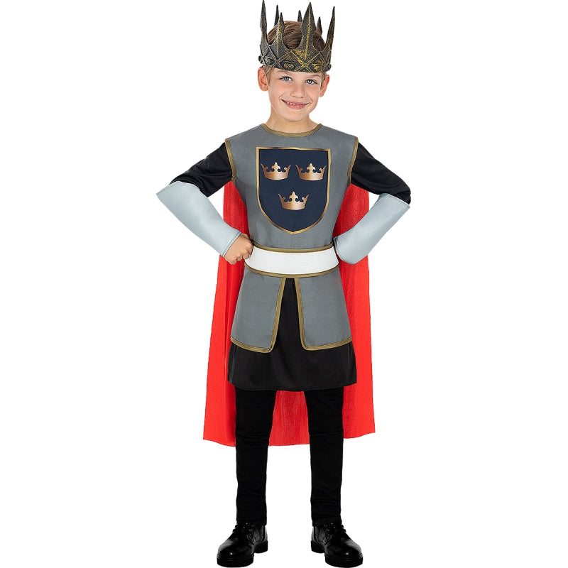 Das exklusive König Artus Klassisch Kinderkostüm enthält: Tunika mit Umhang, Gürtel, Armbändern und Krone | Dieses Kinderkostüm, das Klassischer König Artus – Mittelalter imitiert, ist in 4 verschiedenen Größen erhältlich.