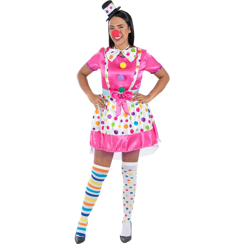 Dieses exklusive Kostüm für Happy Clownfrau Frauen enthält: Kleid, Diadem und Schleife | Dieses Damenkostüm, um sich in festliche zirkusfigur mit lustigem geist zu verwandeln, ist in 3 verschiedenen Größen erhältlich