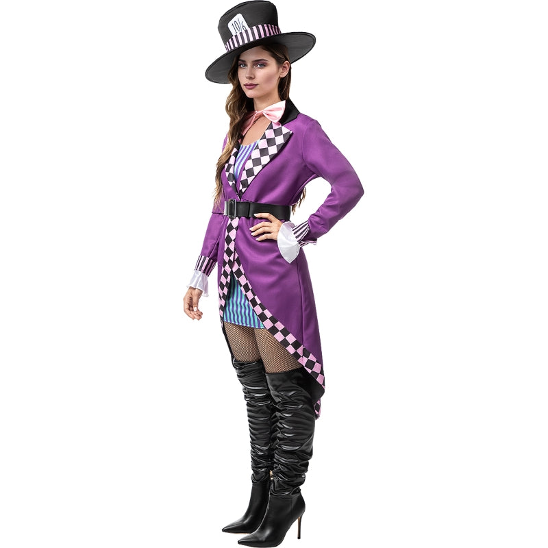Dieses exklusive Kostüm für Hutmacherin Frauen enthält: Kleid, Jacke, Gürtel, Schleife und Hut | Dieses Damenkostüm, um sich in wahnsinnsschöpferin mit zylinder und fantasie zu verwandeln, ist in 7 verschiedenen Größen erhältlich