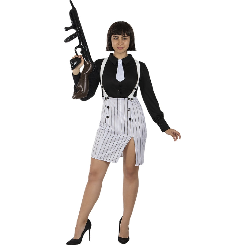 Bereiten Sie sich darauf vor, alle Blicke auf sich zu ziehen mit dem weißen Gangsterkostüm für Damen, eine einzigartige Wahl für diejenigen, die herausstechen und eine unvergessliche Nacht erleben möchten. Bestellen Sie jetzt und überzeugen Sie sich selbst, warum dieses Kostüm zu den Favoriten in unserem Shop gehört.