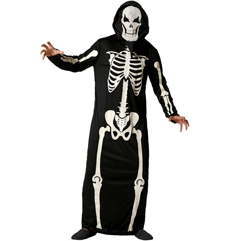 - Langes schwarzes Gewand mit leuchtendem Knochenaufdruck