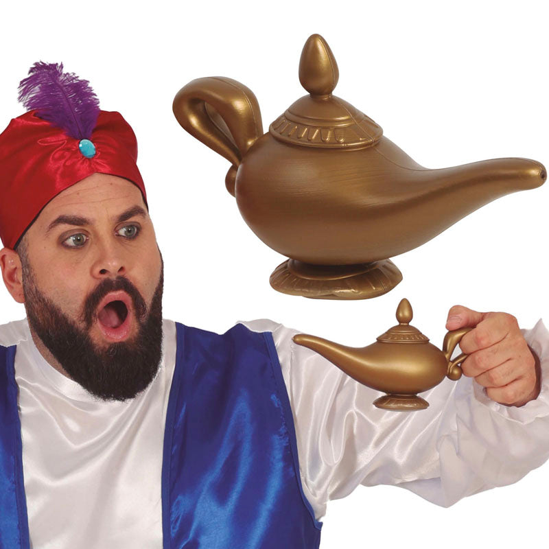 Original Magische Lampe zum Verkleiden auf Partys und im Karneval. Diese Aladins Genie-Lampe ist die perfekte originelle Ergänzung für Ihr Kostüm auf einer Faschings-, Karnevals- oder Kostümparty