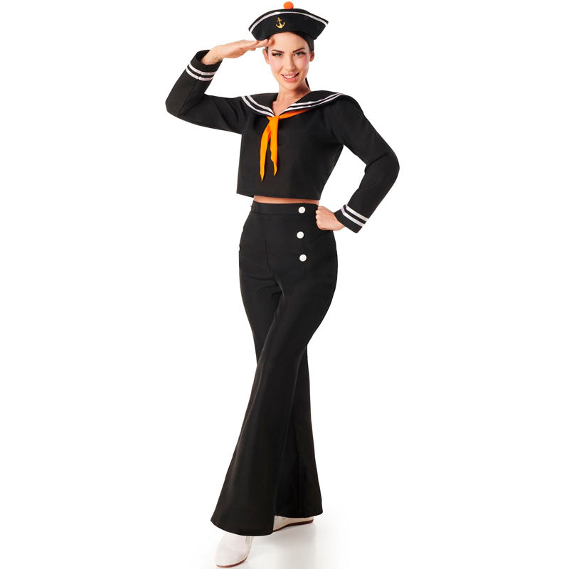 Das Original Matrosin schwarz und weiß-Kostüm für Frauen enthält: Hut, Hemd und Hose | Dieses klassische Matrosin Damenkostüm ist in 4 verschiedenen Größen erhältlich