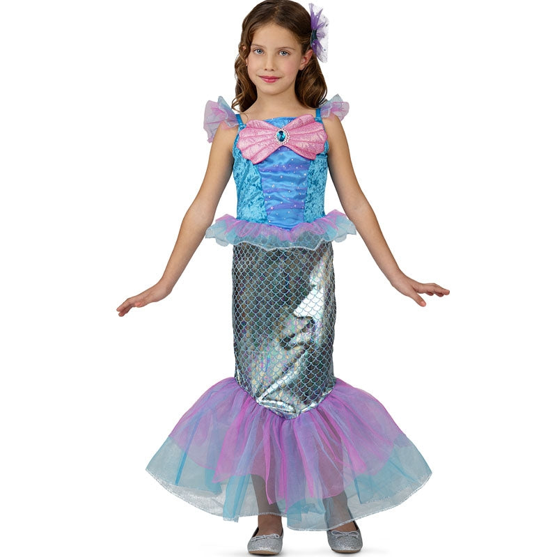 Das originelle Meerjungfrauen-Kostüm für Mädchen besteht aus einem Kleid und einem Kopfschmuck und ist in 3 verschiedenen Größen erhältlich