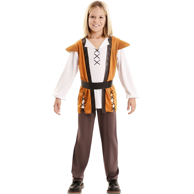 Das mittelalterliche Kostüm des Wirts für Kinder beinhaltet: T-Shirt mit simulierter Weste, Hose, Gürtel | Dieses mittelalterliche Kostüm für Jungen ist in 4 verschiedenen Größen erhältlich.