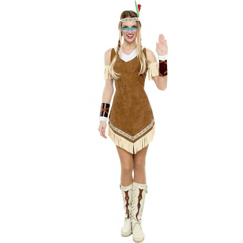 Das Original Mohikaner Indianerin-Kostüm für Frauen enthält: Kleid, Armbänder, Armreifen, Stirnband mit Feder | Dieses Mohikaner Indianerin Damenkostüm ist in 2 verschiedenen Größen erhältlich.
