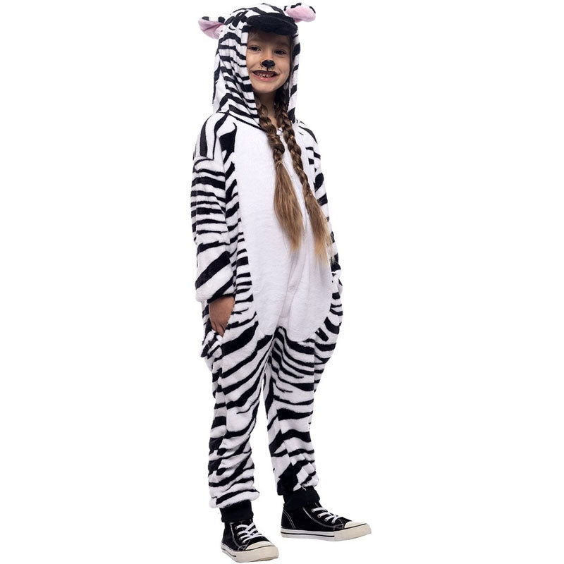 Das Original Noahs Arche Zebra-Kostüm für Kinder enthält: Jumpsuit mit Kapuze und Schwanz | Dieses schwarz und weiß gestreiftes Zebra Kinderkostüm ist in 2 verschiedenen Größen erhältlich