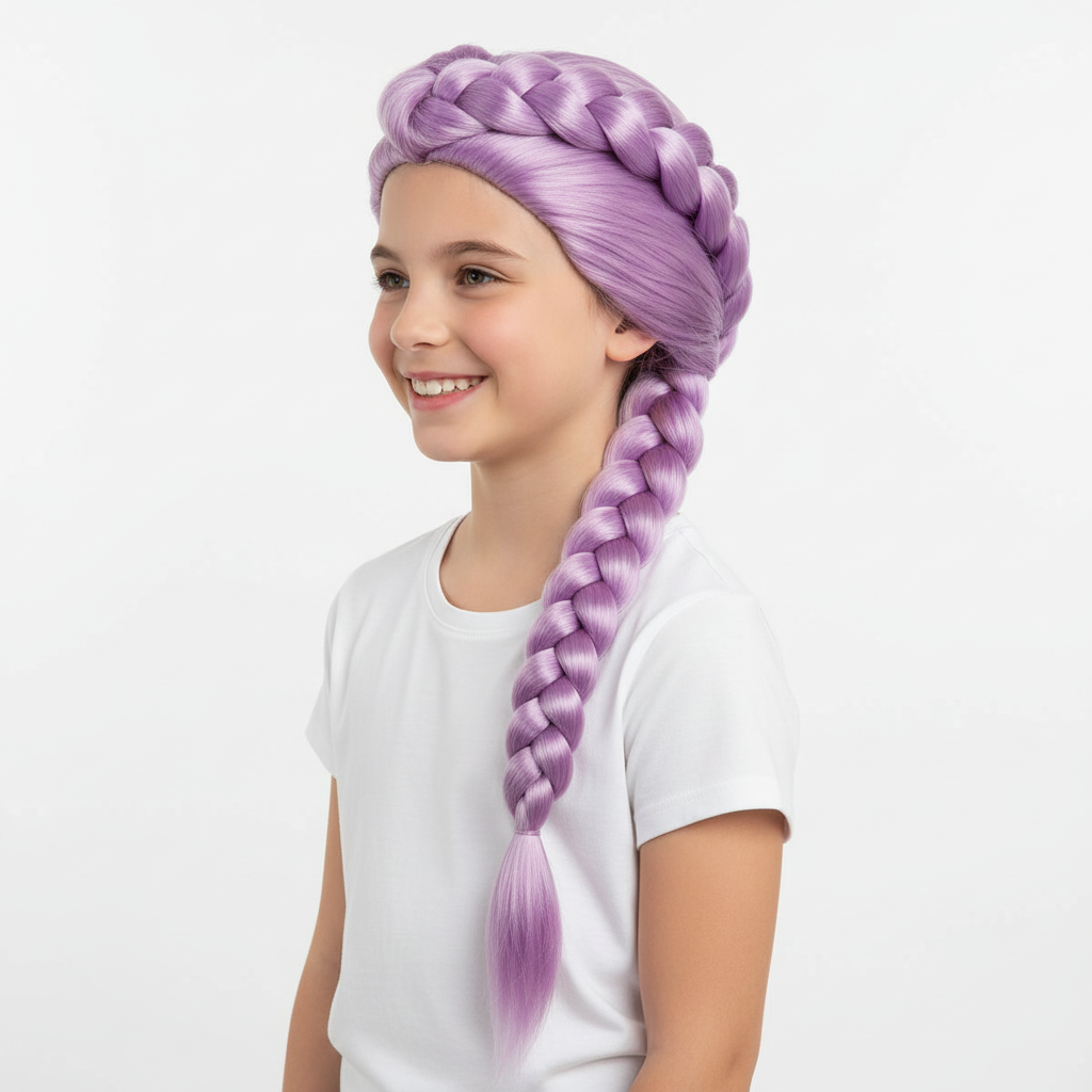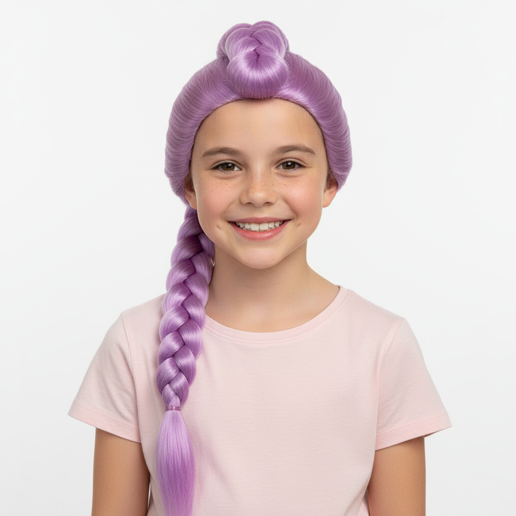 Die Rumi K-Pop-Perücke kommt in Einheitsgröße, anpassbar an die meisten Kinder im Vorschulalter. Wenn du Fragen zur Passform hast oder Beratung suchst, zögere nicht, uns an hallo@kostuemejarana.com zu schreiben.