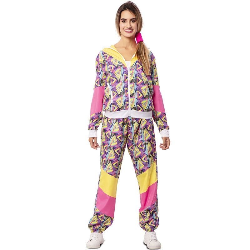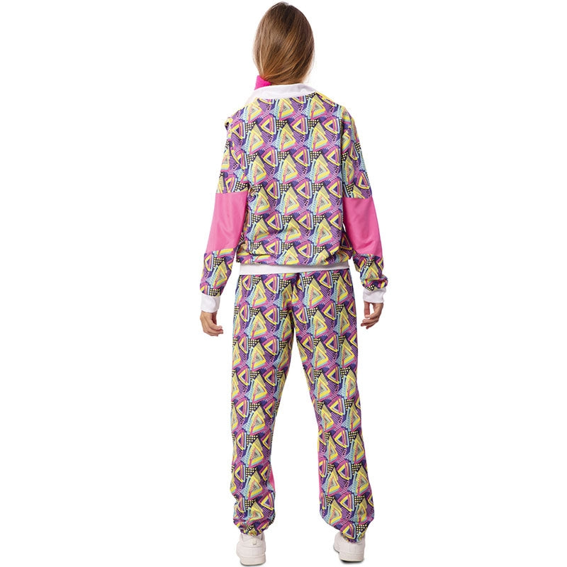 Das Original Psychedelischer Trainingsanzug-Kostüm für Frauen enthält: Hose und Jacke | Dieses Retro-Trainingsanzug aus den Achtzigern Damenkostüm ist in 2 verschiedenen Größen erhältlich