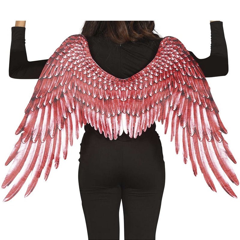 Original Rote Engelsflügel aus Stoff zum Verkleiden bei Gruselpartys und Halloween. die roten Engelsflügel aus Stoff für das Kostüm eines gefallenen Engels ist die perfekte originelle Ergänzung zu Ihrem Gruselkostüm, das auf jeder Horror-Faschingsveranstaltung überraschend und farbenfroh wirkt