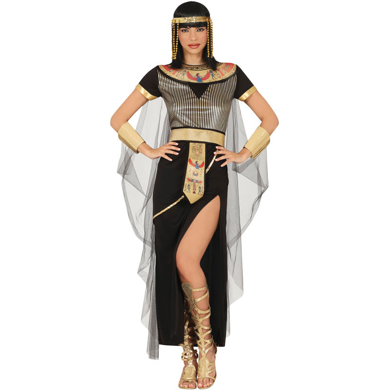 Verwandle deinen Look und verkörpere die Eleganz des alten Nils mit dem schwarz-goldenen Ägypterin-Kostüm für Damen. Sein Design kombiniert tiefes Schwarz mit goldenen Details, die den Luxus und das Mysterium der pharaonischen Königswürde hervorrufen – perfekt für Mottopartys, Karneval oder historische Veranstaltungen.