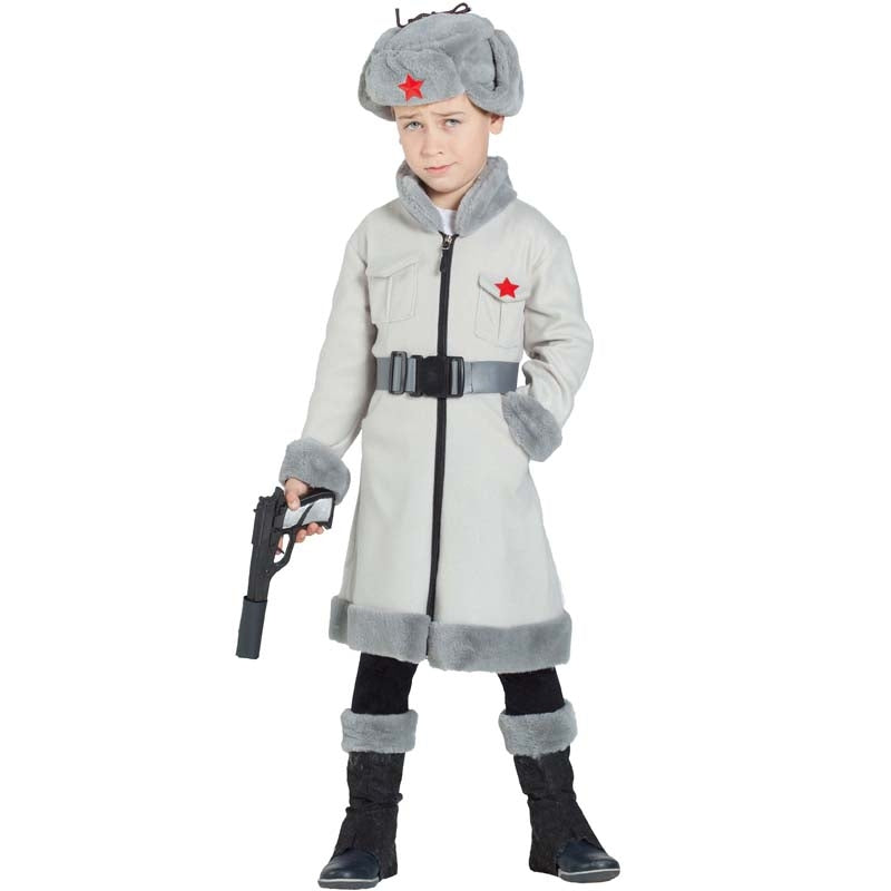 Das Original Russisches sowjetisches Militär-Kostüm für Kinder enthält: Hut, Mantel, Gürtel und stiefelstulpen | Dieses Russisches sowjetisches Militär Kinderkostüm ist in 4 verschiedenen Größen erhältlich.