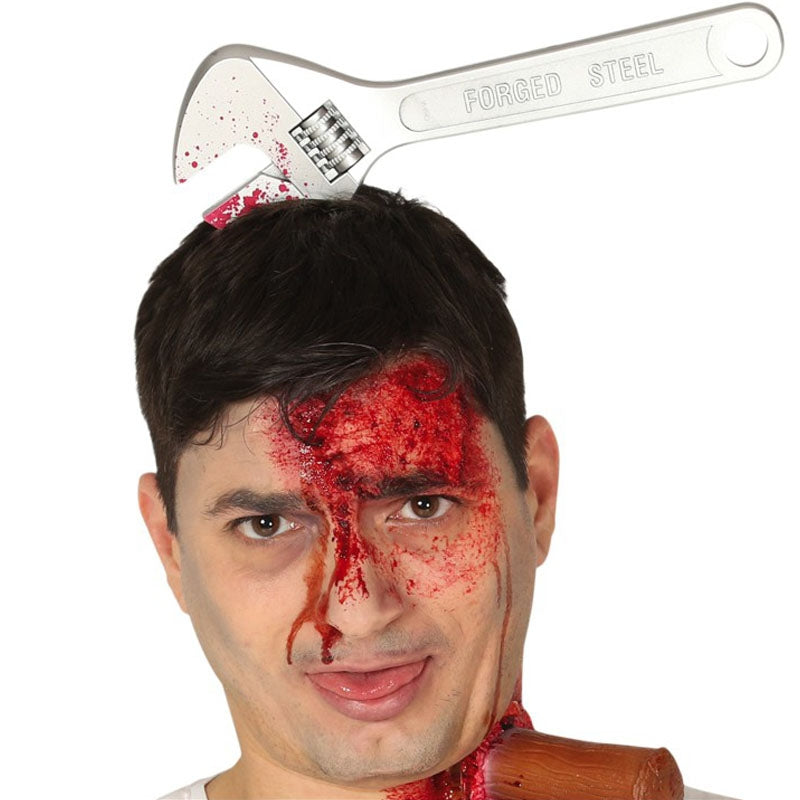 Original Schraubenschlüssel-Diademe zum Verkleiden bei Gruselpartys und Halloween. das Diadem mit einem Schraubenschlüssel für das Zombie-Kostüm ist die perfekte originelle Ergänzung zu Ihrem Gruselkostüm, das auf jeder Horror-Faschingsveranstaltung überraschend und farbenfroh wirkt