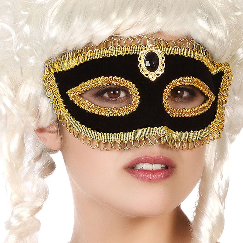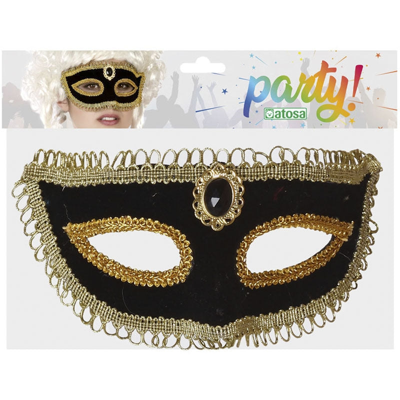 Schwarze Maske mit goldener Paspelierung ist auf Lager und wird versandt, sobald es wieder verfügbar ist