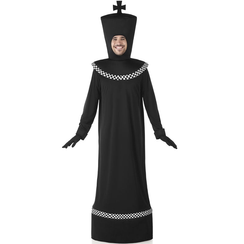 Das Original Schwarze Schachfigur-Kostüm für Erwachsene enthält: Tunika und 2 Kapuzen (Krone und Kreuz) | Dieses schöne schwarze Schachspielfigur Herrenkostüm ist in Einheitsgröße