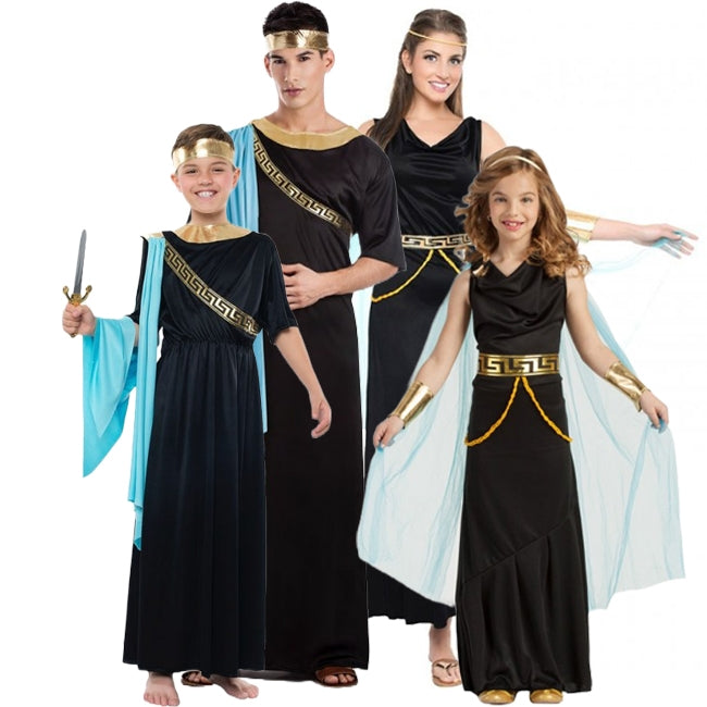 Fantastische Idee, die ganze Familie als Schwarzer Grieche zu verkleiden, mit passenden Designs für Männer, Frauen, Jungen und Mädchen. Sie können den Inhalt jedes Kostüms unten im Abschnitt "Vervollständige deinen Look" einsehen, wo jedes Kostüm dieser Gruppe einzeln aufgeführt ist.