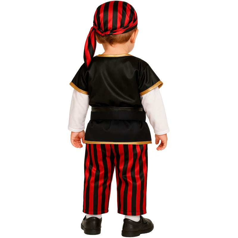 Das Original Seeräuber Pirat-Kostüm für Kleinkinder enthält: Hemd mit Weste, Hose, Gürtel und Kopftuch | Dieses der gefürchtetste Freibeuter der Weltmeere Baby Kostüm ist in 2 verschiedenen Größen erhältlich