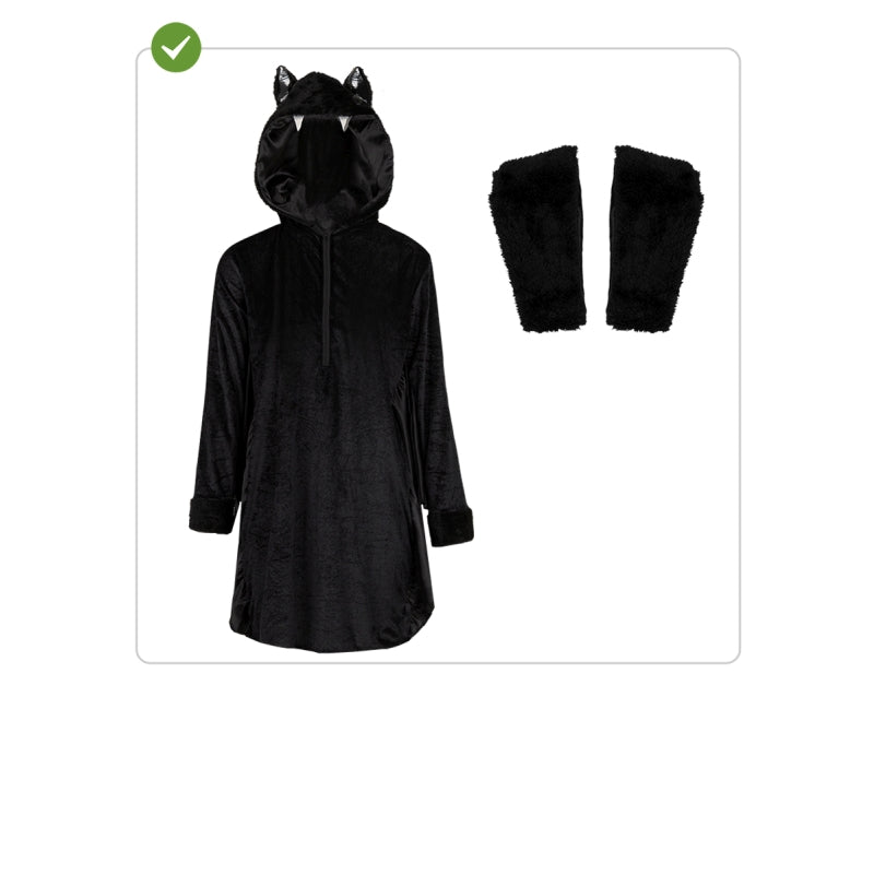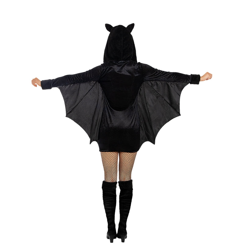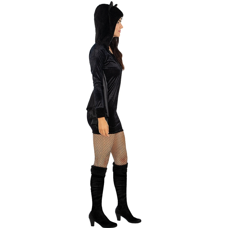 - Schwarzes Kleid mit Kapuze und Fledermausohren